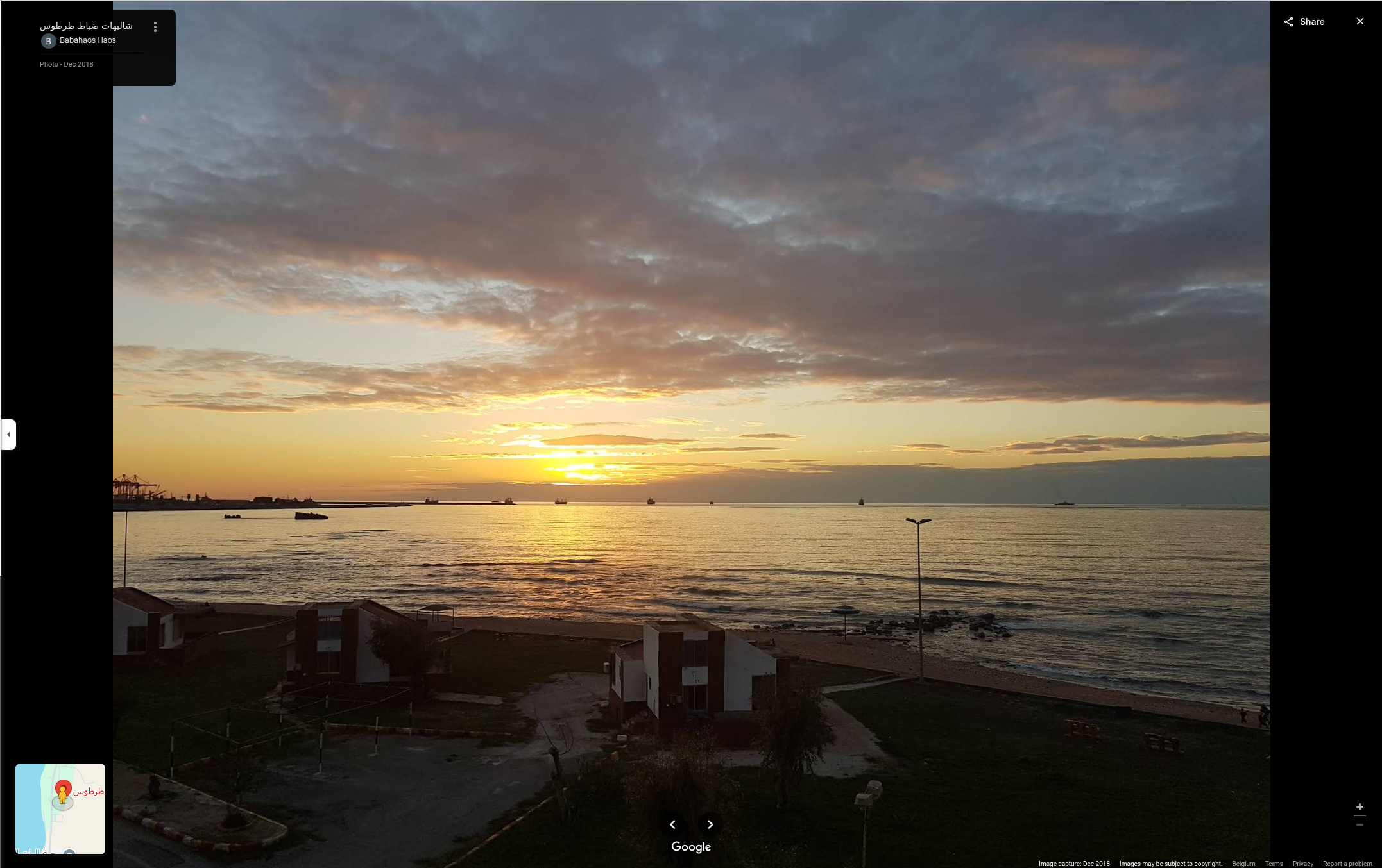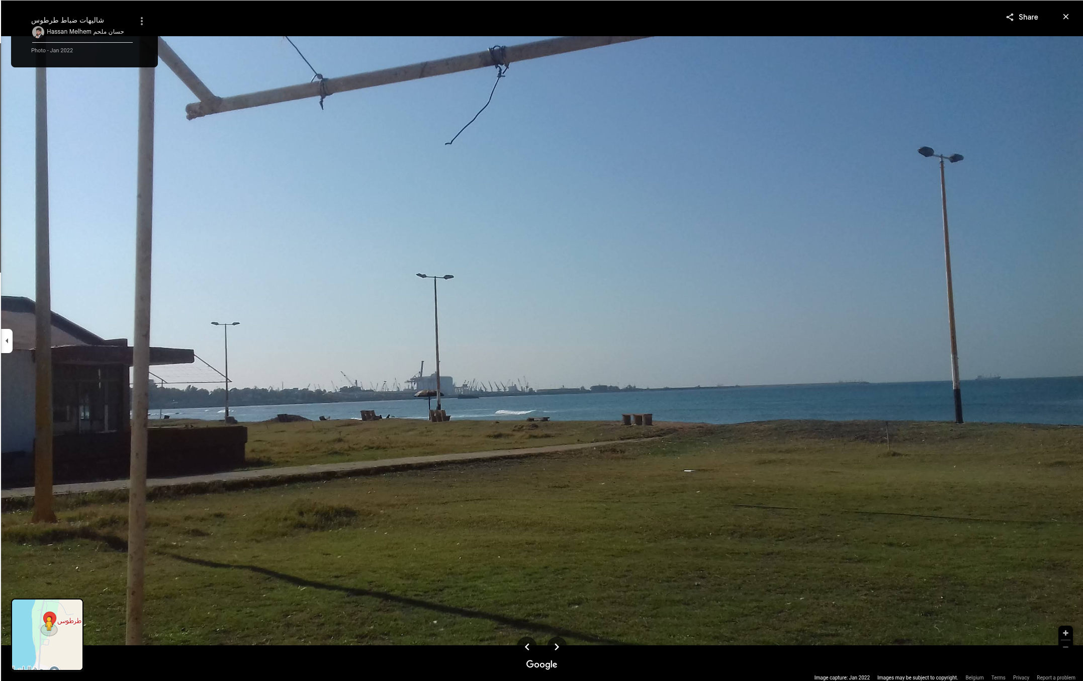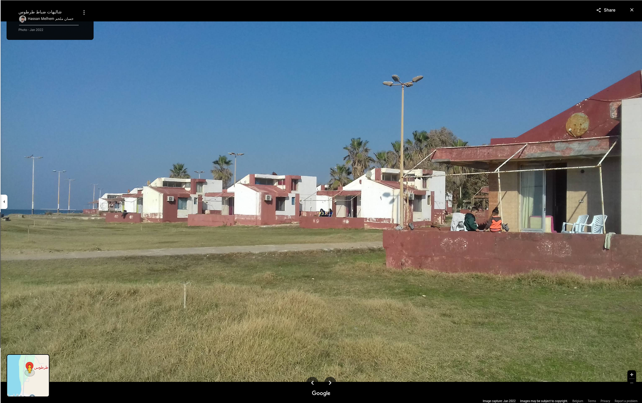 But this is not quite enough; ideally, we would need to confirm that the houses are indeed the same. This would provide an additional point of confirmation. We therefore need to take a closer look at these houses in a different way. Going back to the map, we can see that there is a point called ‘شاليهات ضباط طرطوس’ where a multitude of photos have been added by users. And that is exactly what we need in order to bypass the fact that we do not have Google Street View to see the coast at this location. Let us analyse these images and try to reconstruct the houses we can see at this level of the beach.