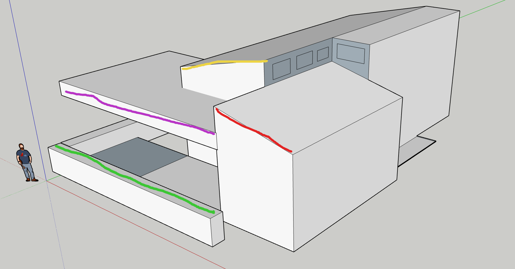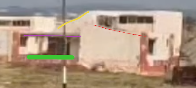 Let’s recall what we want to do. Based on the three images above, we would like to deduce the architecture of the red houses that were found at this location. This will allow us to determine whether these are indeed the red houses in the background of the starting image as well as the houses seen on Google Earth. Now that we have a plan for the houses in mind, let’s make a comparison to see if it works.