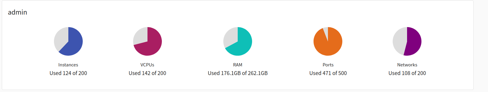 When we reached 30 sandboxes allocated, we noticed that we are extremely close to the limit of our existing resources: On one hand, RAM / vCPU / instances / networks / ports – we can see that we are still able to deploy more instances easily: