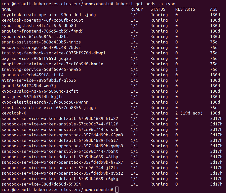 2- Deploying KYPO head application: here is when we define all parameters of how KYPO will interact with various components (internal Gitlab, instances creation, OpenStack API calls etc…) . All of this is defined in: /kypo-crp-tf-deployment/tf-head-services- tfvars/deployment.tfvars. The deployment produces a working KYPO installation in a Kubernetes cluster.