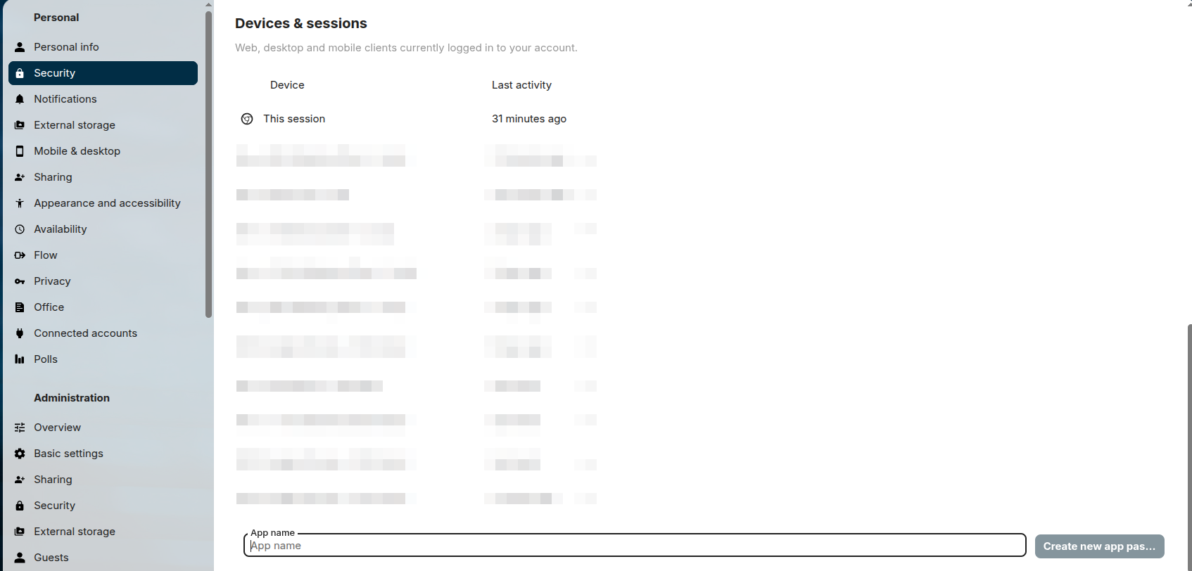 First we will create a new app password. This is a good security habit, and is mandatory if your NextCloud instance is configured with multi-factor authentication (MFA).