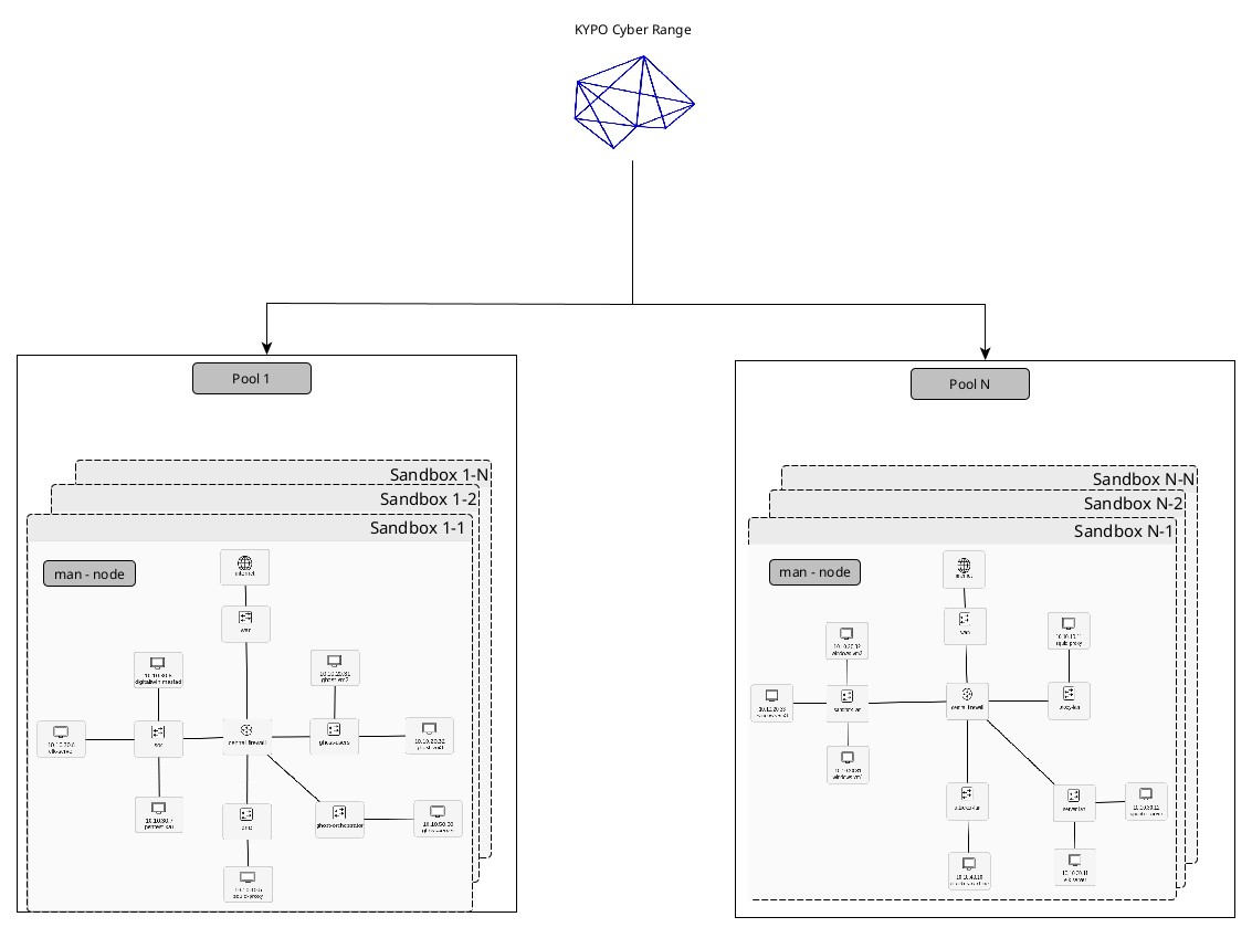 In a typical KYPO deployment, this image is uploaded to OpenStack (often via Terraform during KYPO installation) and then reused for each sandbox deployment. Identical sandbox instances are grouped into a “pool”.
